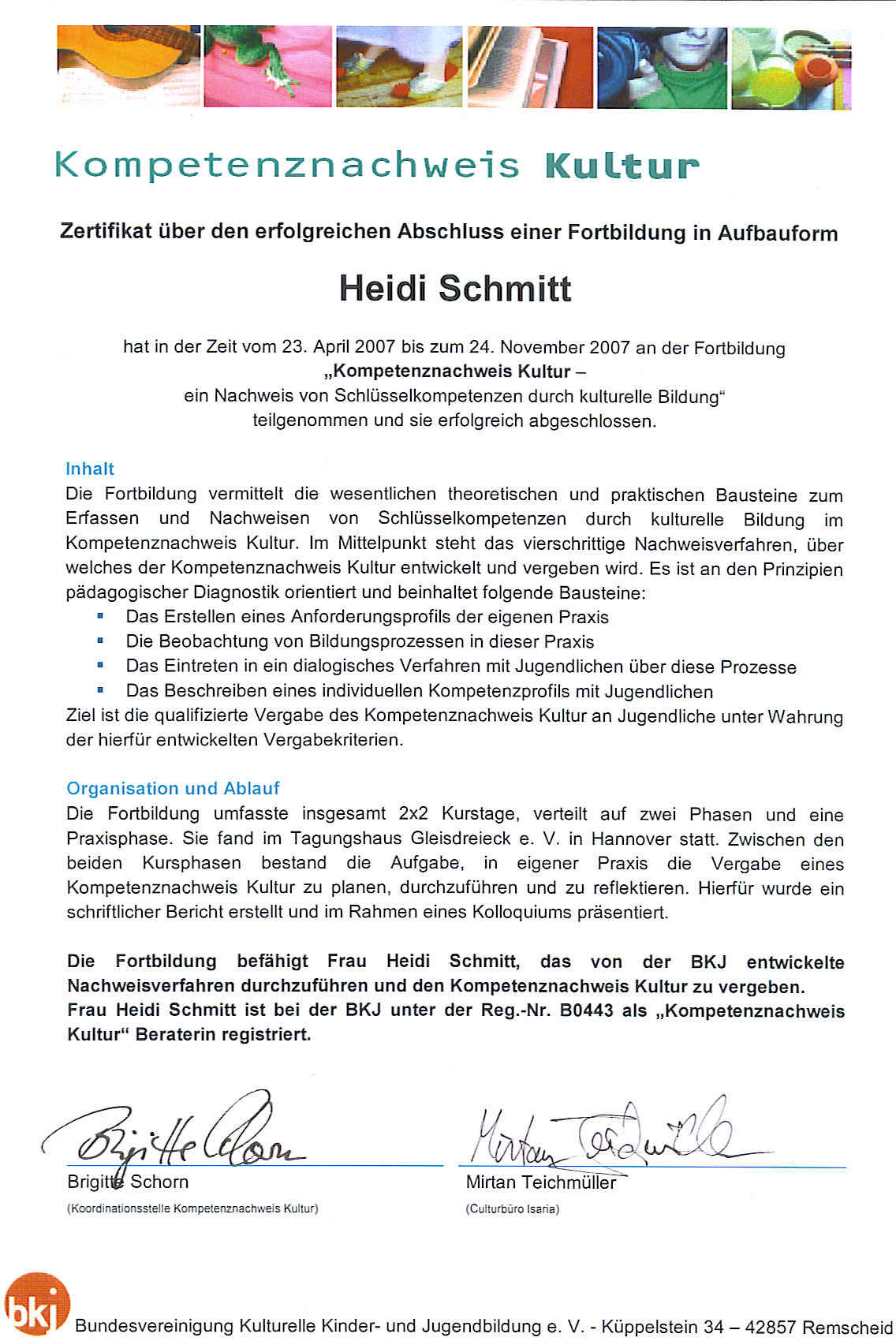 "Kompetenzen sichtbar machen." Jugendliche zeigen in Projekten vielfältige Kompetenzen: Organisationsfähigkeit, Methodenkenntnisse, Kommunikation, Selbststeuerung, Kreativität, Durchhaltevermögen u.a.m. Oftmals erfahren sie keine Würdigung. Projektteilnehmende können von uns den Kompetenznachweis Kultur oder International (unterstützt vom BMFSFJ) erwerben. Auf der Grundlage eines Projektprofils sowie durch Begleitung, Feedbacks und Gespräche werden die gezeigten und entwickelten Kompetenzen gemeinsam mit den Jugendlichen herausgestellt.